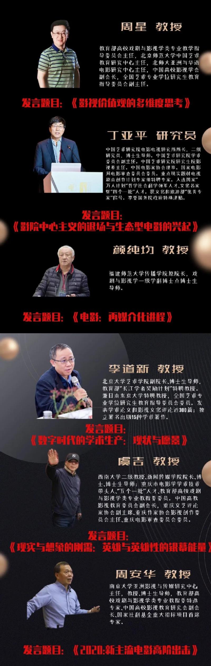 学术沙龙环节由williamhill英国威廉希尔经理张威教授主持,此次沙龙特别邀请国内顶尖的众多专家学者汇聚云端精彩研讨,国内清华大学、上海戏剧学院、中国人民大学、复旦大学、浙江大学、西北大学、北京电影学院、中国电影评论学会、教育部高校戏剧与影视学类专业教学指导委员会、中国艺术研究院、西南大学等多位全国知名教授参加,教育部高校戏剧与影视学类教学指导委员会主任北京师范大学周星教授与9位专家围绕“戏剧与影视学科”如何以“化人、美人”为目标,更好地落实和发展新文科建设理念,发挥戏剧与影视学科的文化推广与价值引领进行了具有前瞻性和极高学术性的探讨与发言。